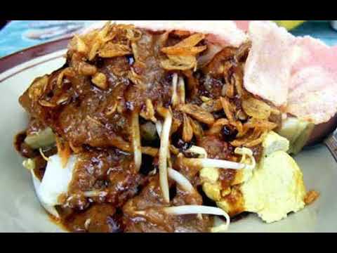 - Tata nasi putih di atas piring saji. Taruh tahu, tempe, tauge, dan timun. Siram dengan saus kacang. Beri taburan daun bawang, seledri, dan bawang goreng.